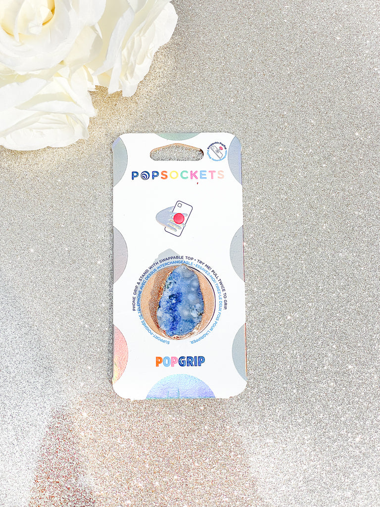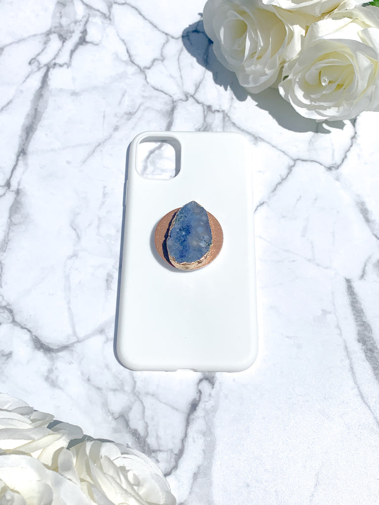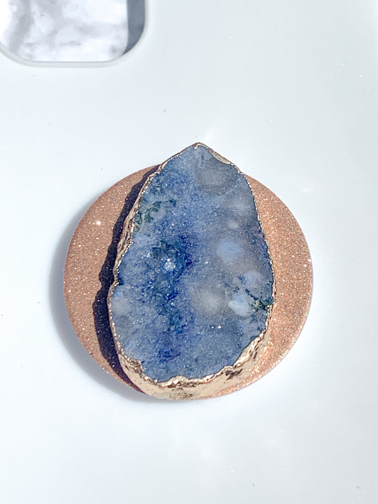 Sapphire Blue Druzy Geode Crystal Gold Edged Phone Popsocket