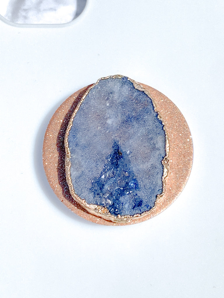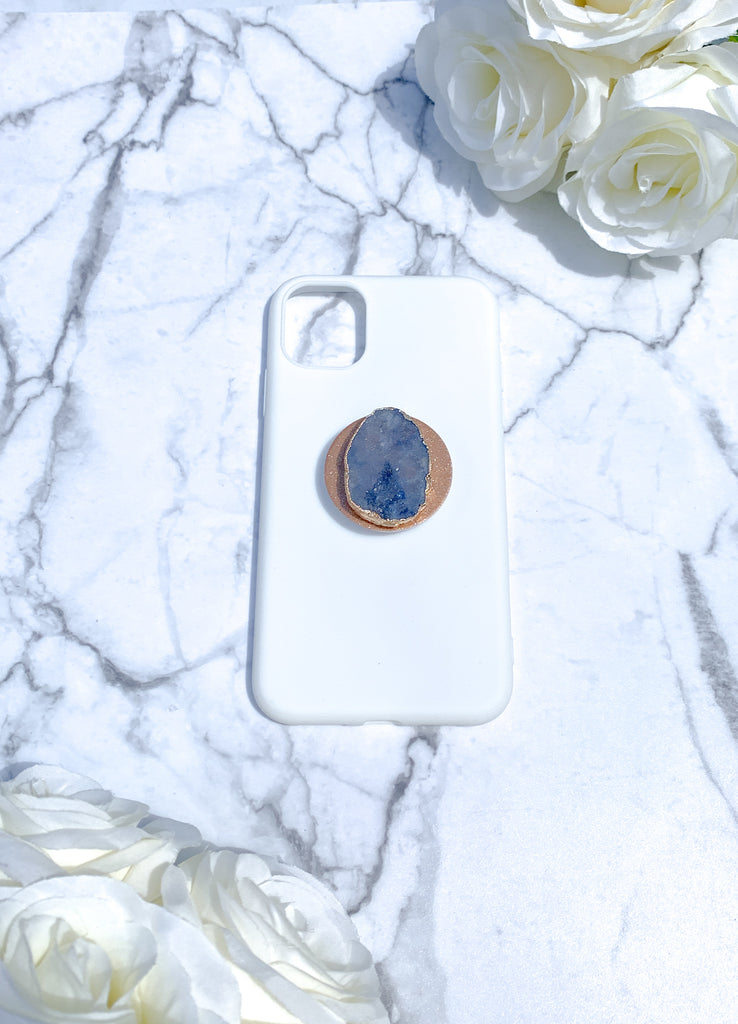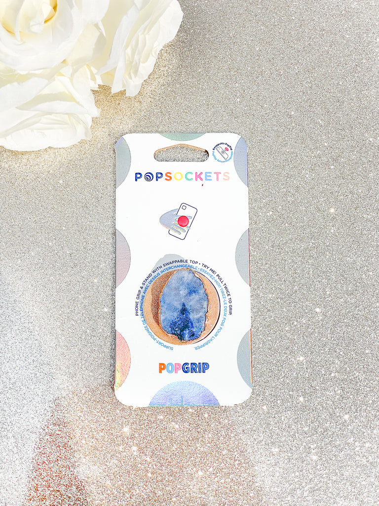Sapphire Blue Druzy Geode Crystal Gold Edged Phone Popsocket