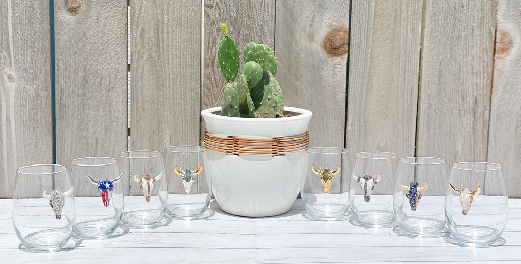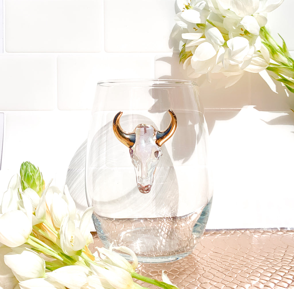 Glass & Gold Longhorn Skull Stemless Wine Glass