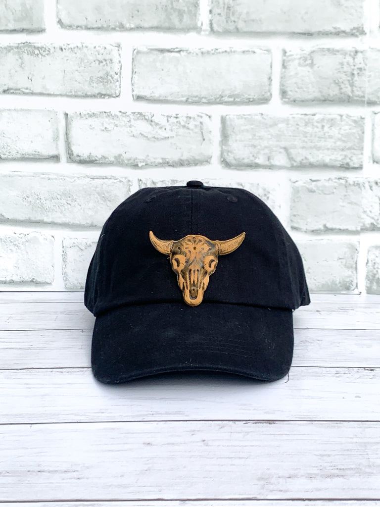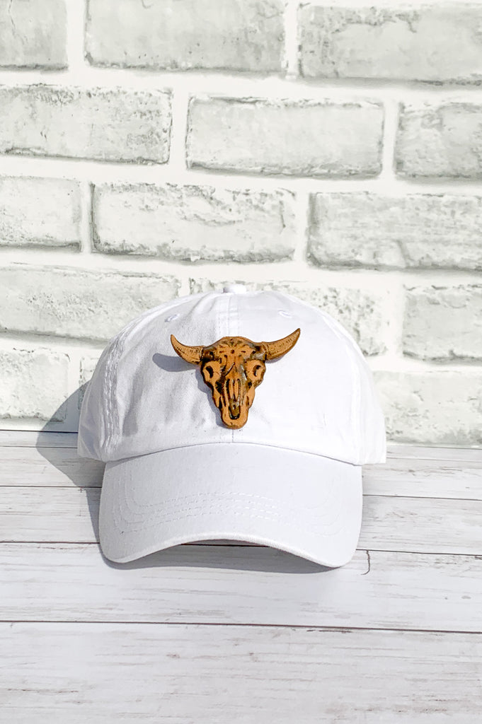Leather Longhorn Skull High Ponytail Hat - White, Black or Pink Hats!