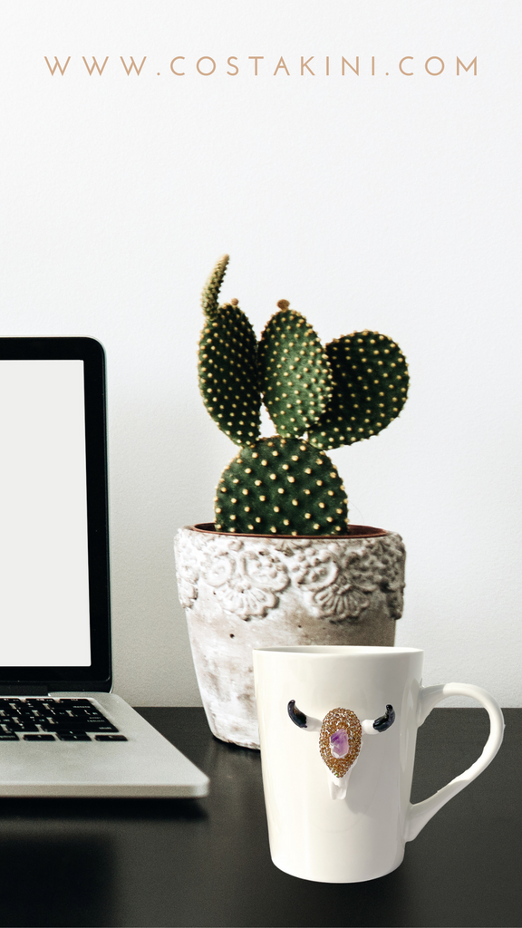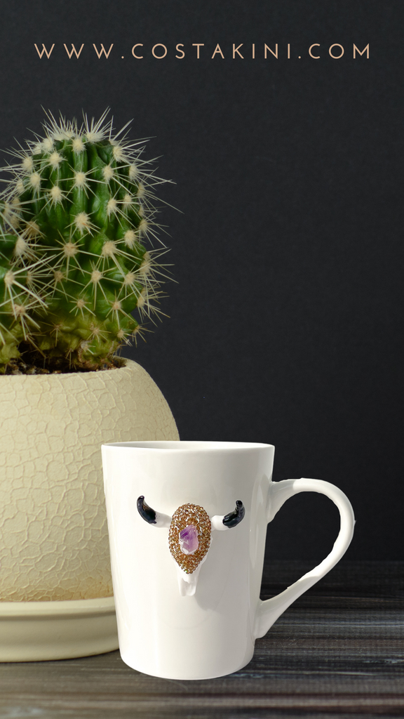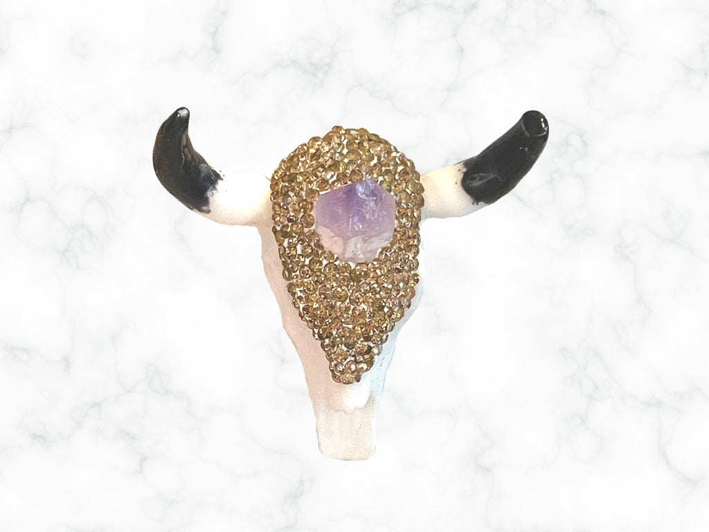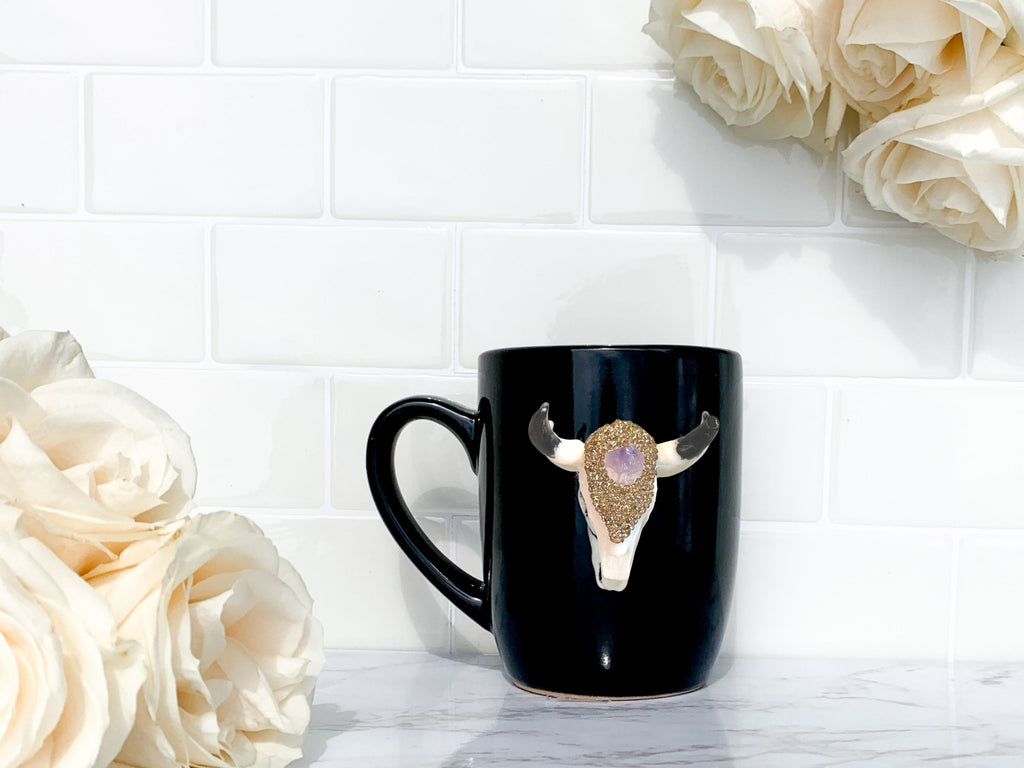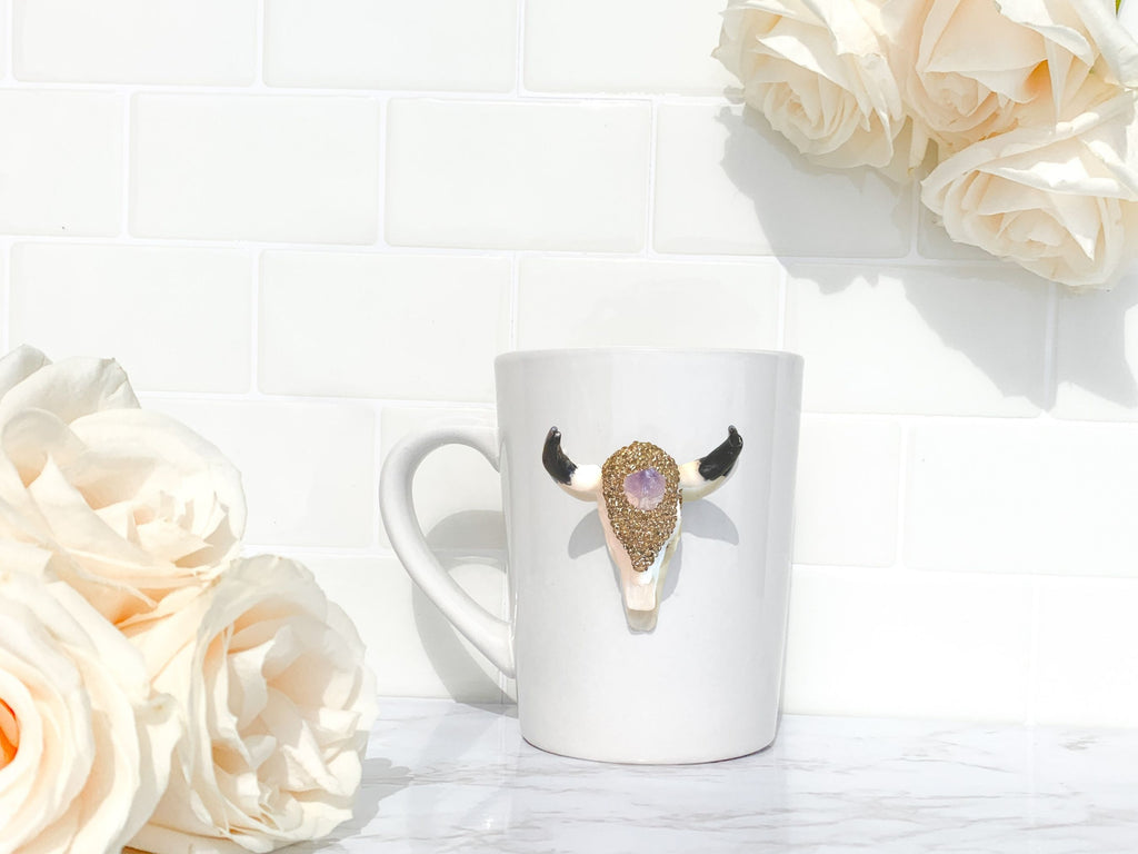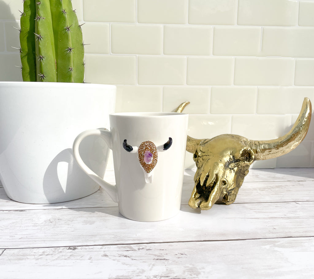 Amethyst Crystal and Rose Gold Rhinestones Longhorn Skull Mugs
