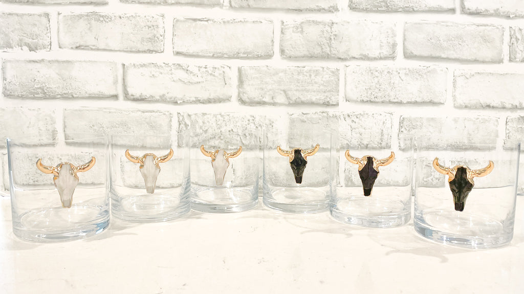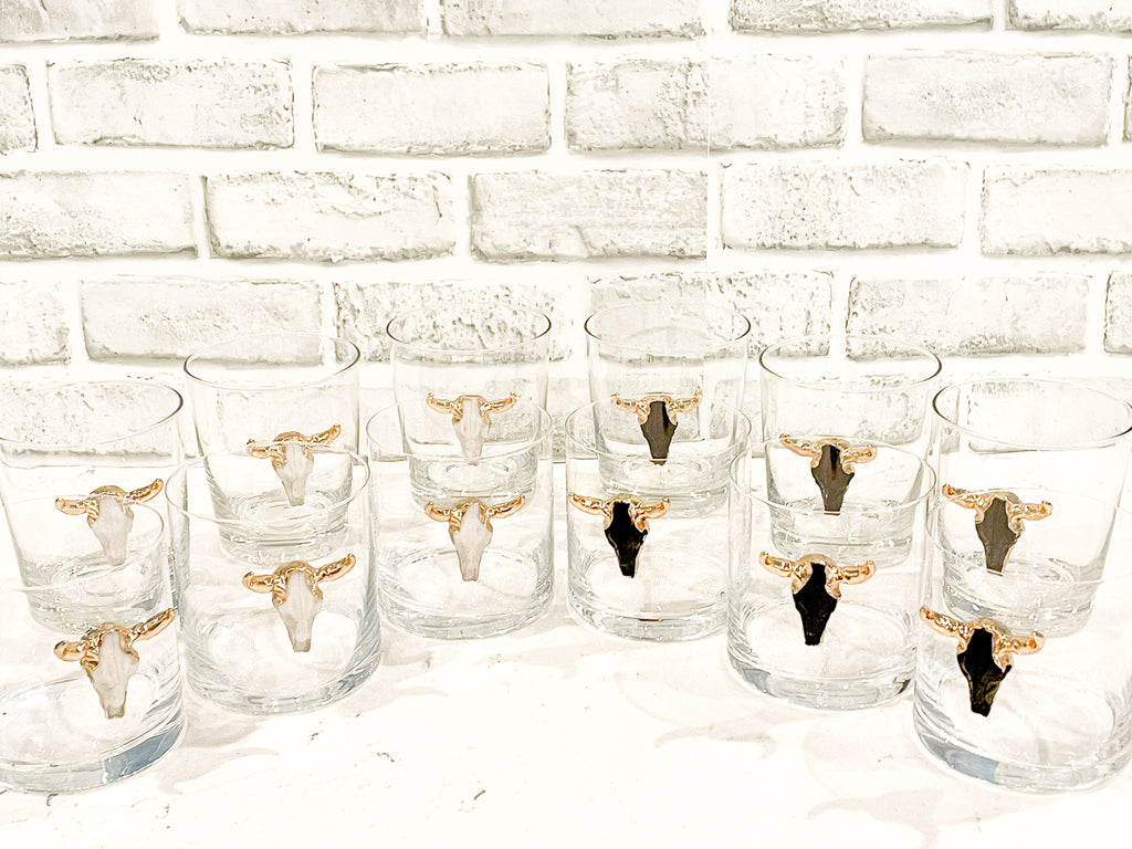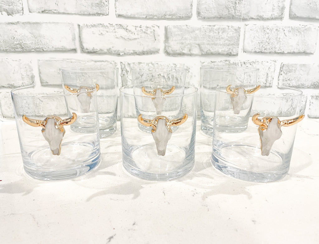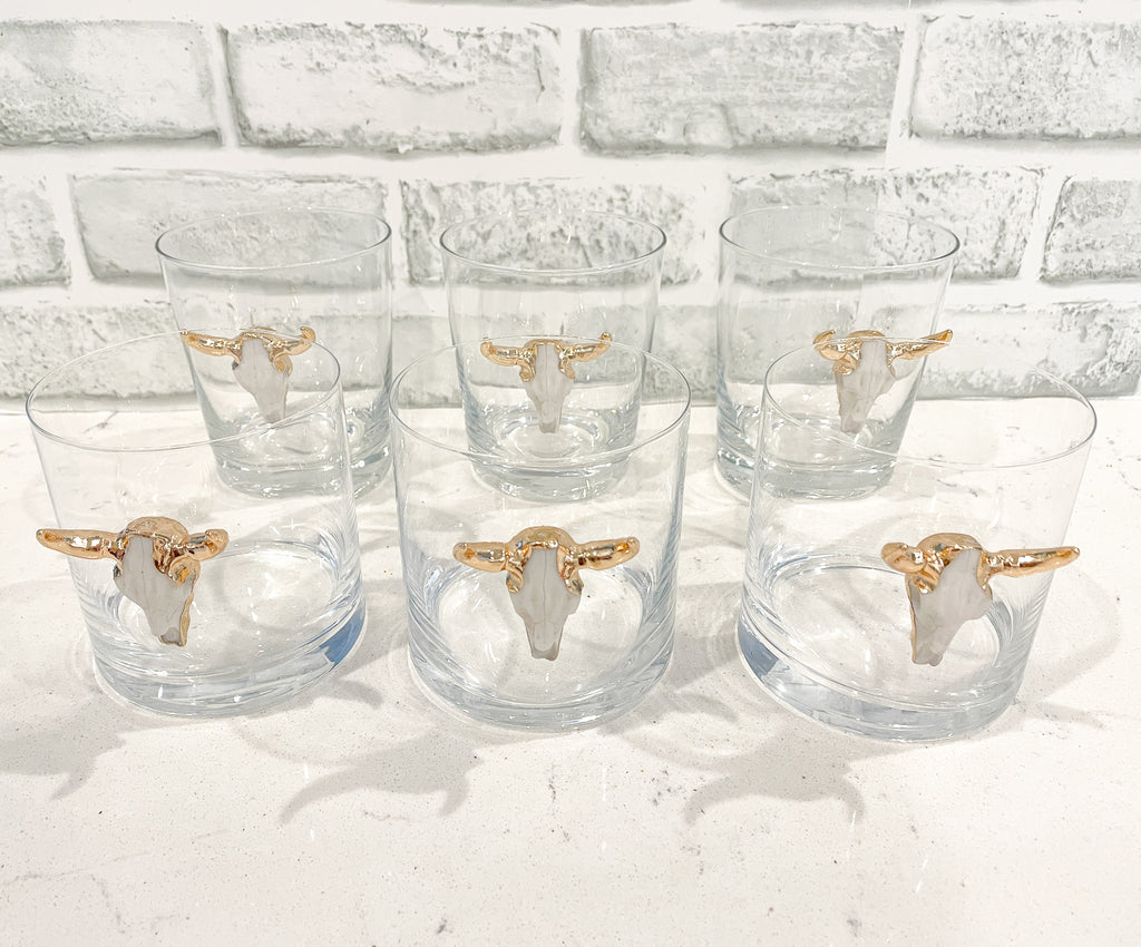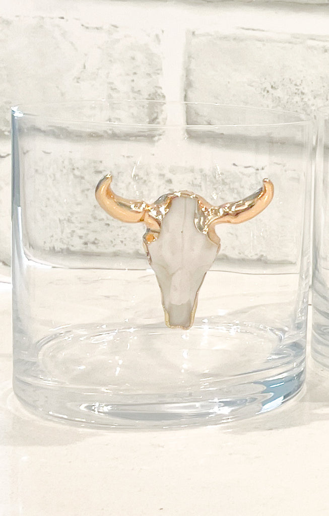 White & Gold Longhorn Skull Whiskey / Old Fashion Glasses