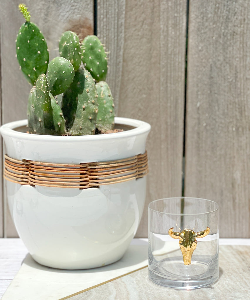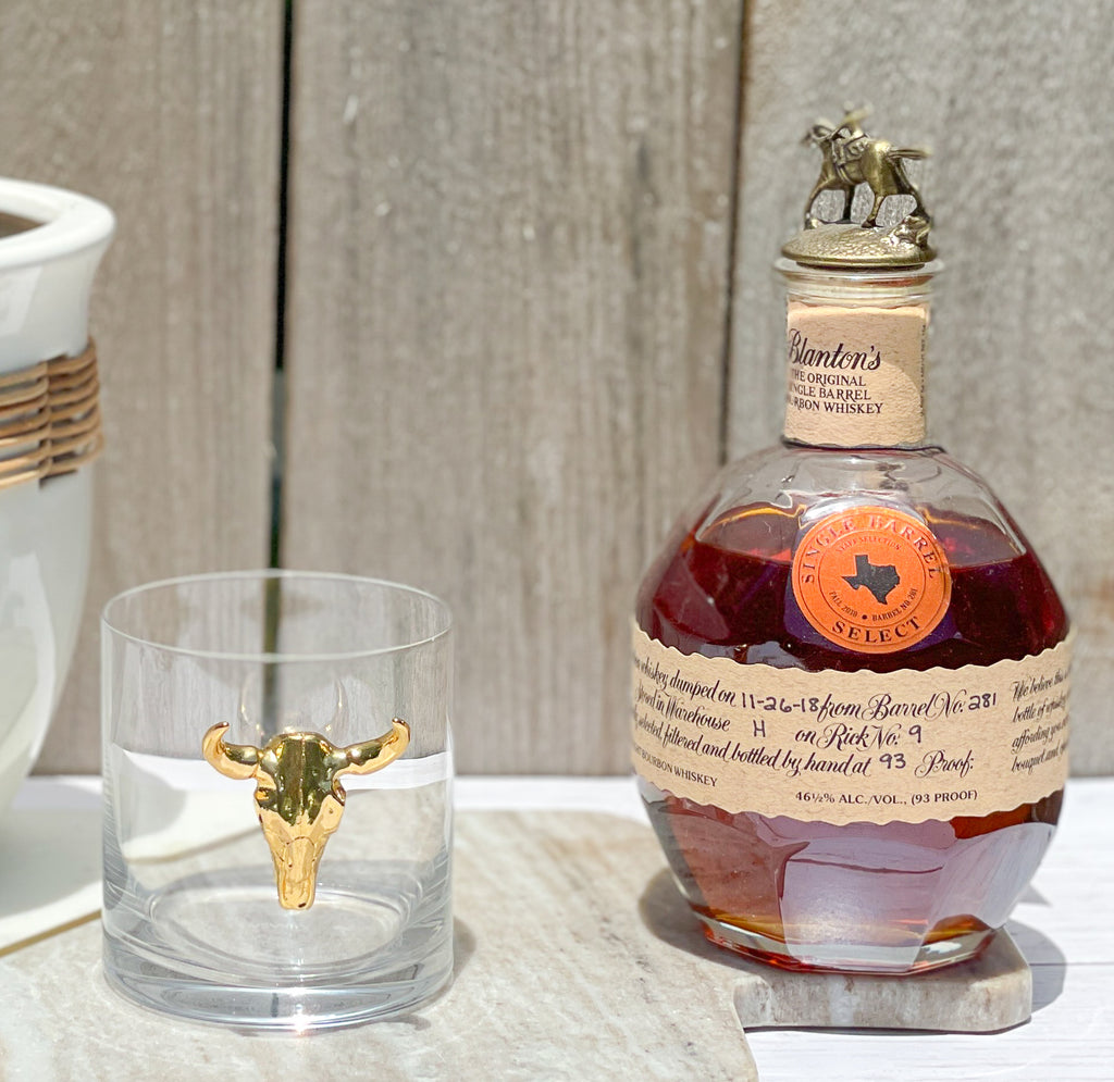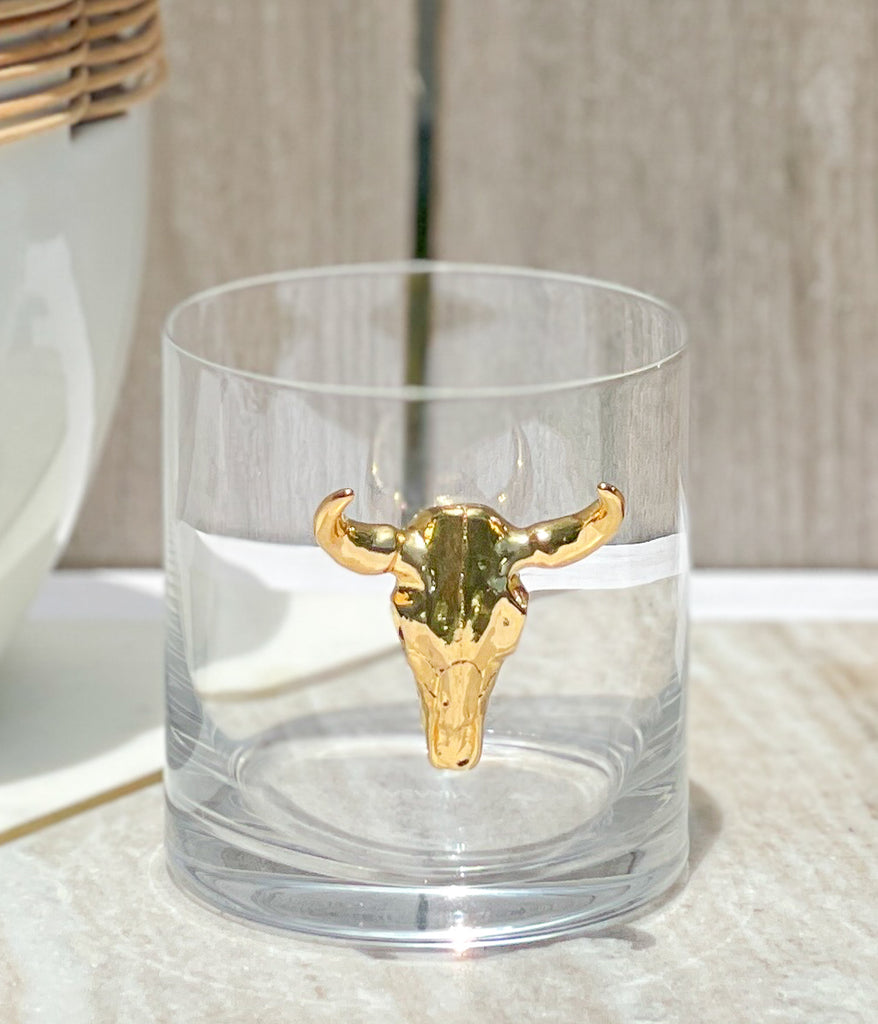 Gold Longhorn Skull Whiskey / Old Fashion Glasses