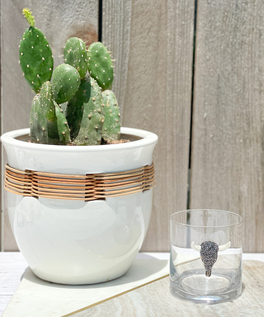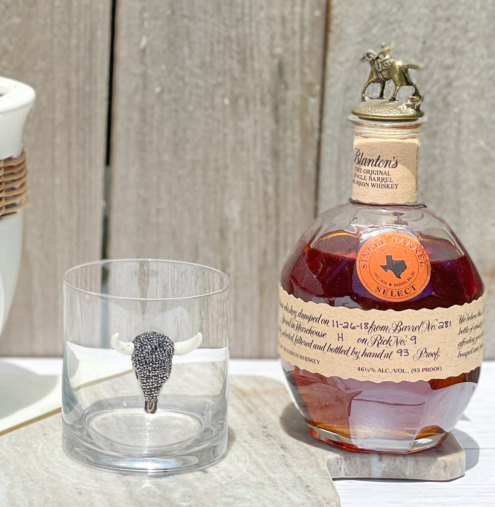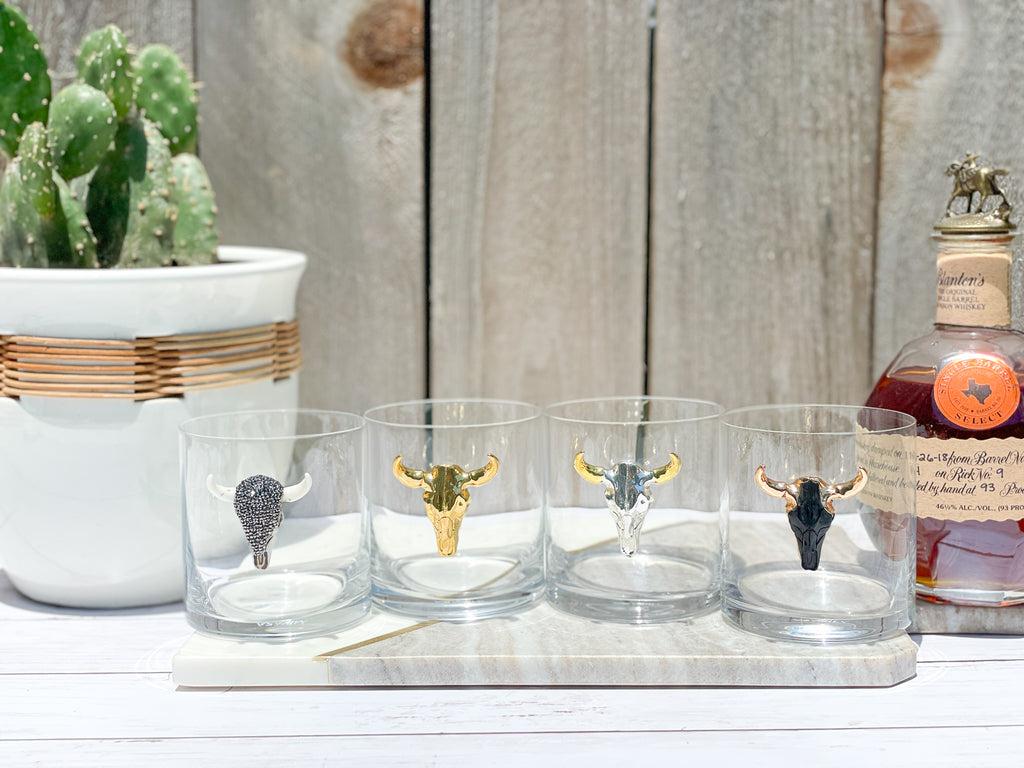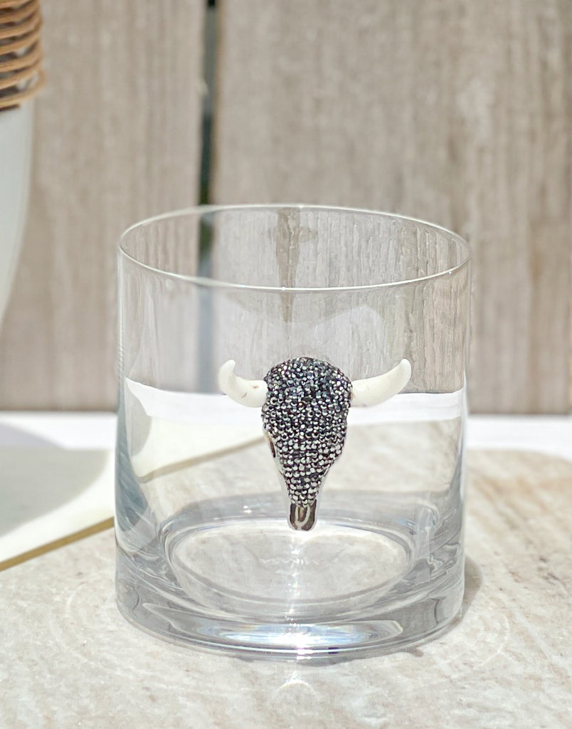 Gunmetal Rhinestones Longhorn Skull Whiskey / Old Fashion Glasses