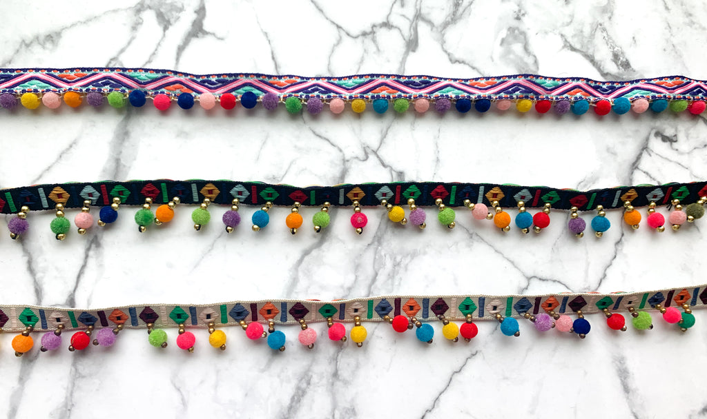 - Colorful Poms on Aztec Band