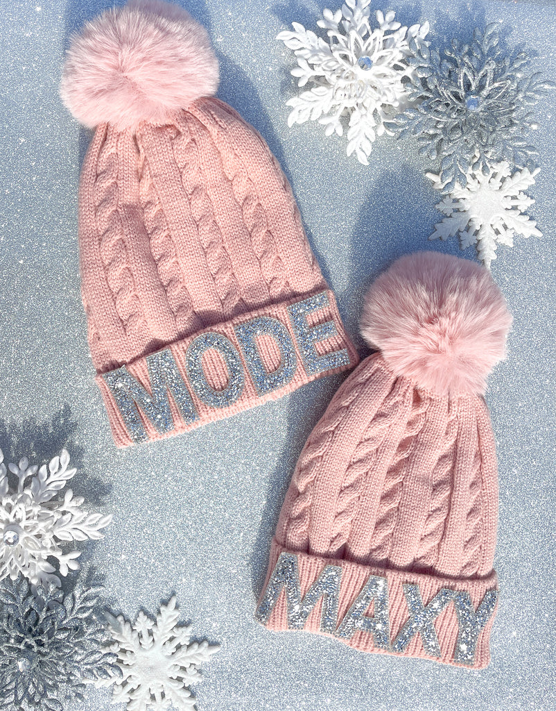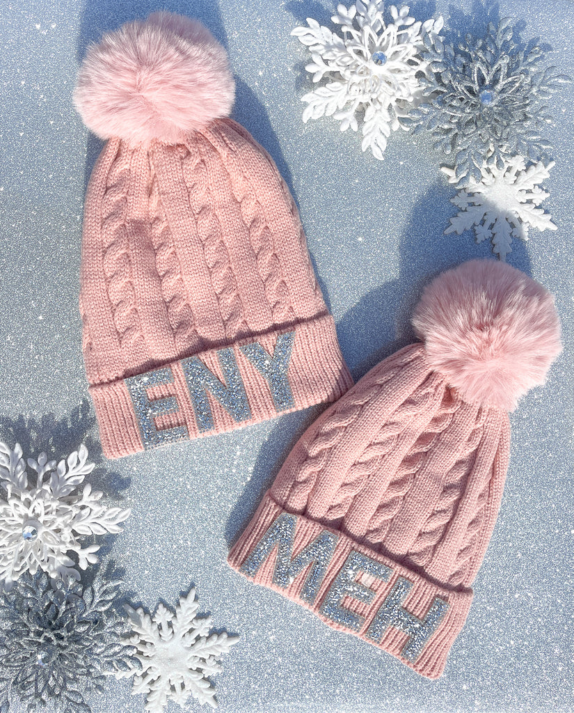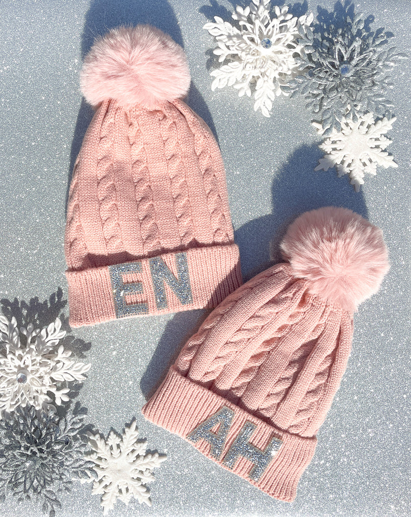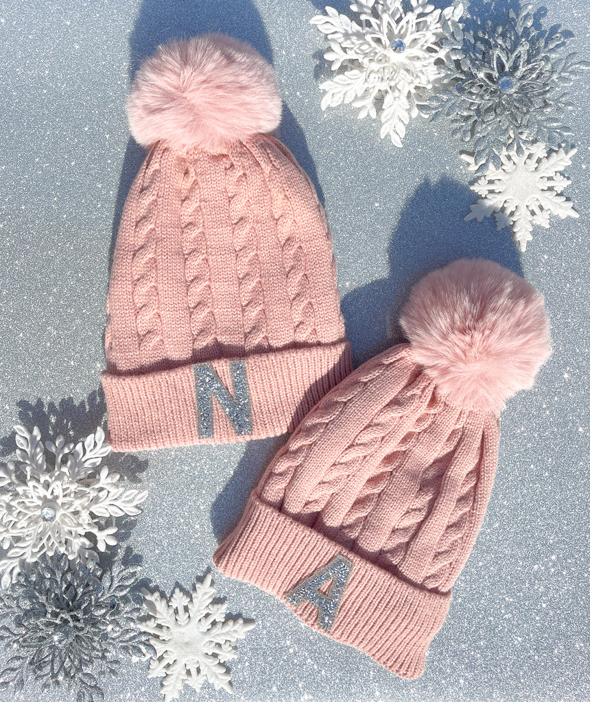 ❄️ Custom Rhinestone Monogram Blush Pink Beanie - Ski Beanie / Fur Beanie / Knit Beanie / Rhinestone Beanie / Bling Beanie / Winter Hat / Monogram Hat ❄️