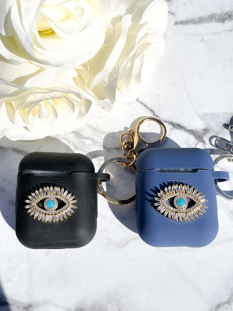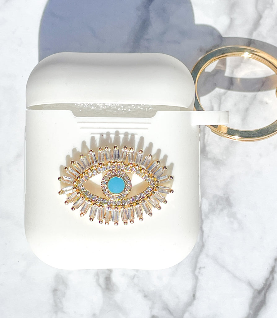 Gold and Rhinestones Turquoise Evil Eye AirPods Case and Face Mask