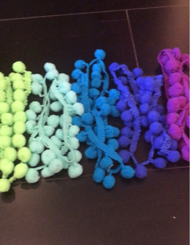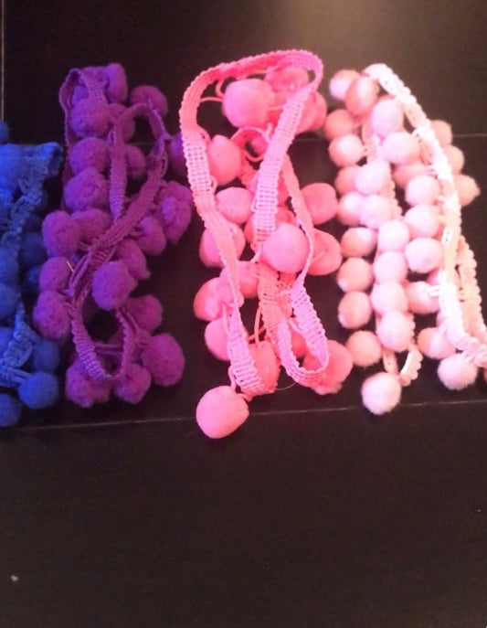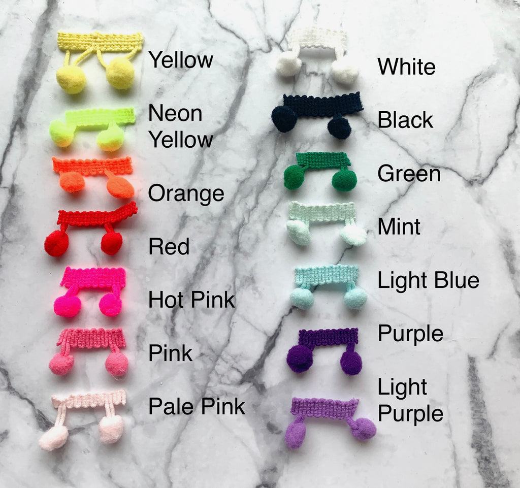 These pom pom hat bands will fit Panama & kids floppy hats (*regular floppy hat pom pom bands sold in separate listing)
