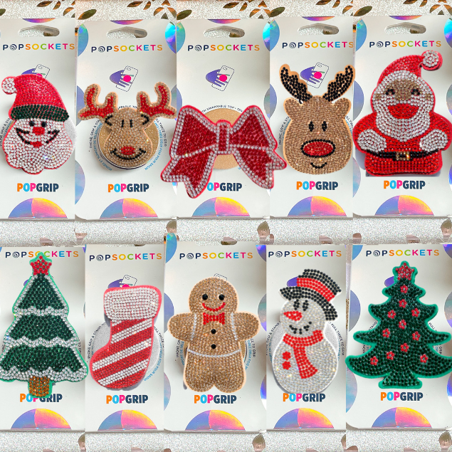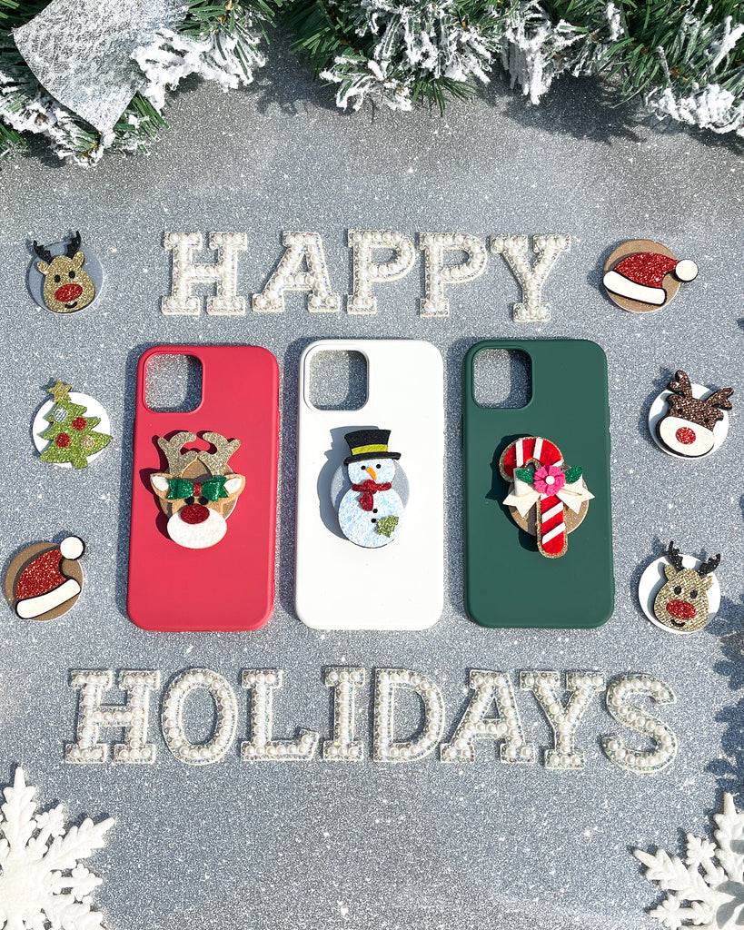Rhinestone Holiday Popsocket - Snowman / Reindeer / Santa Claus / Stocking / Xmas Tree / Red Heart / Gingerbread Man / Christmas Popsocket
