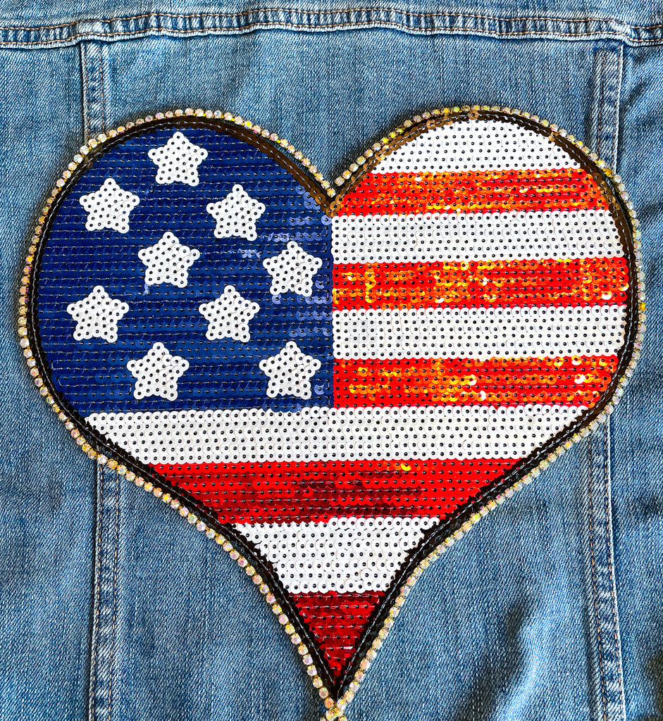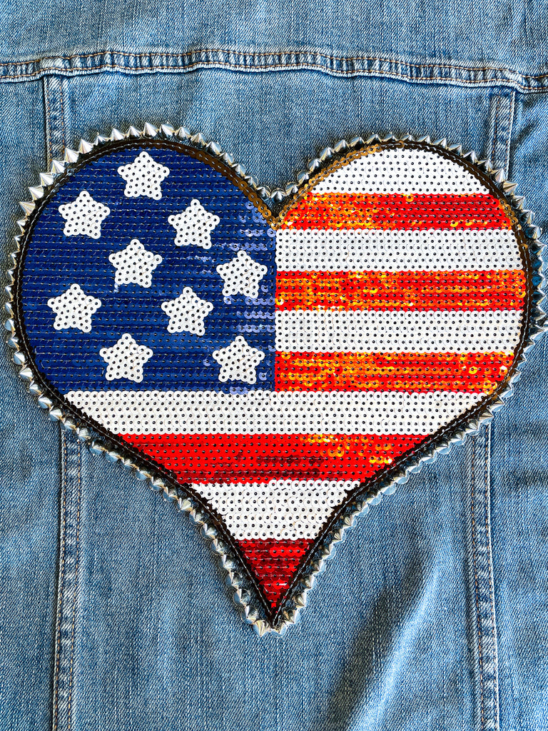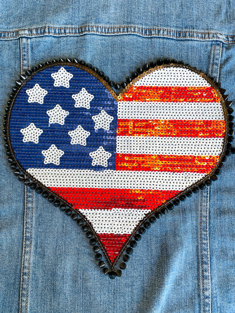 🖤 Option to add spikes or rhinestones around the sequin flag heart!