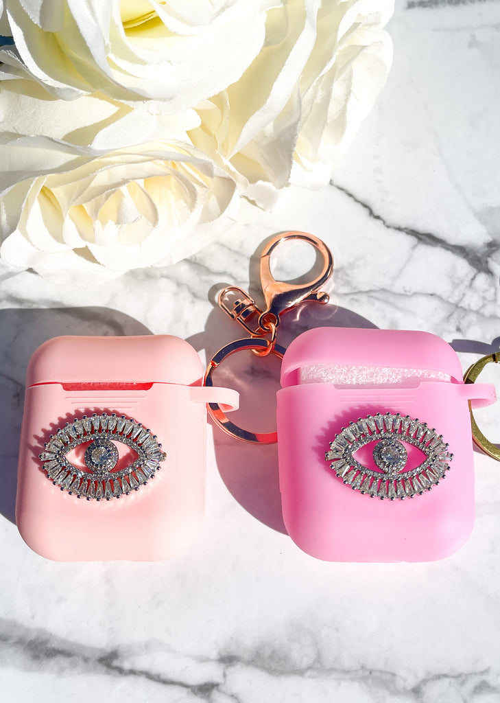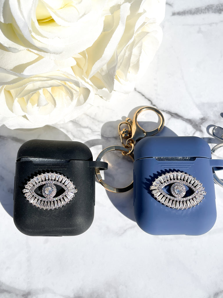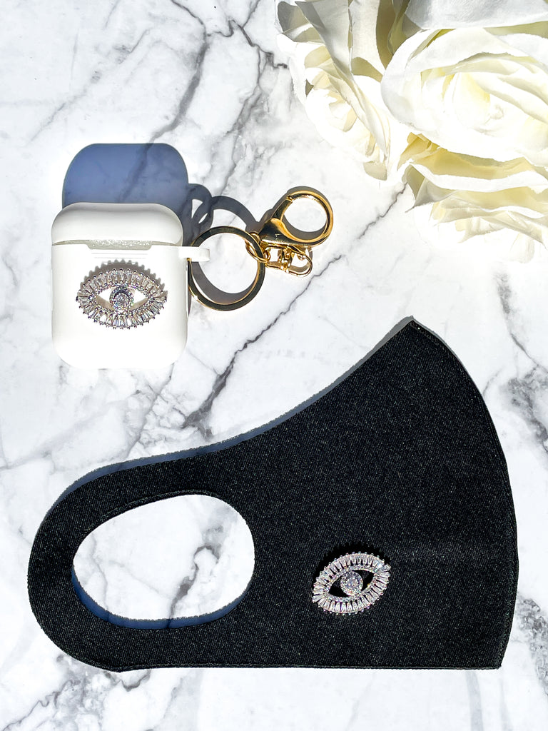 Silver & Rhinestones Evil Eye AirPods Case and Face Mask